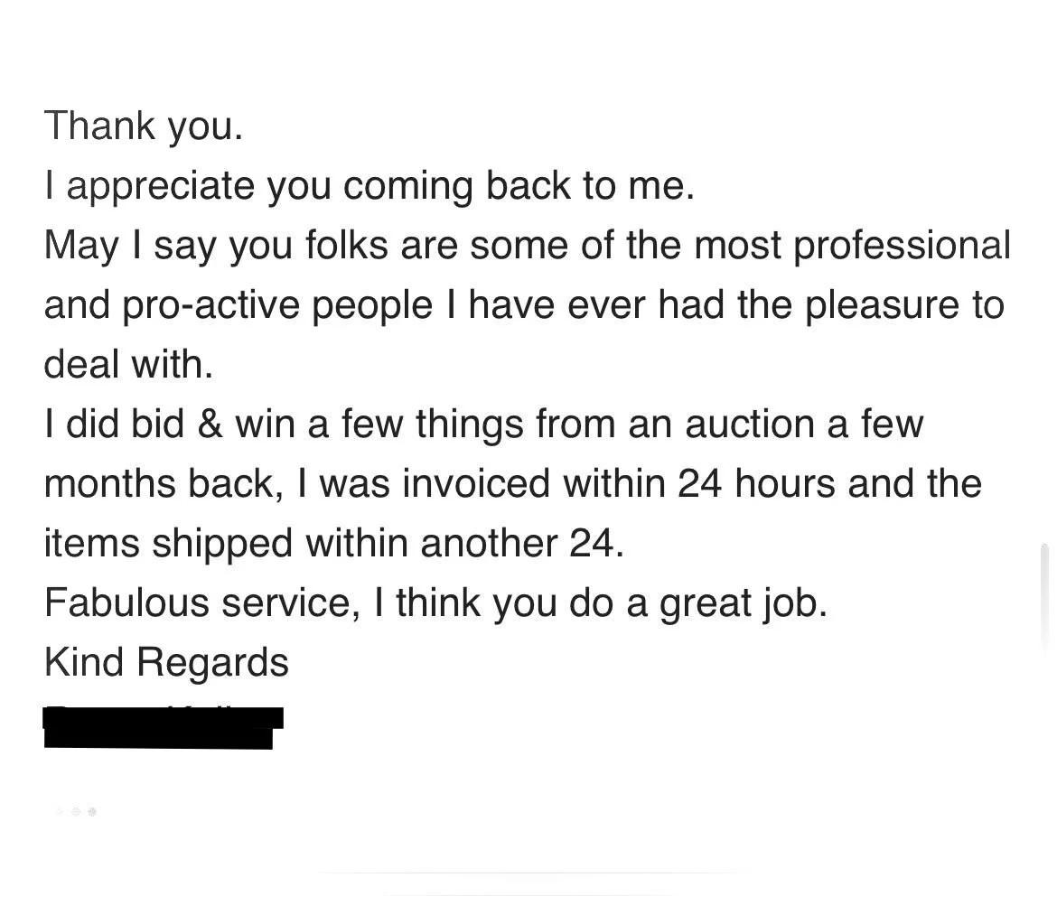 The auctions are held online on a platform called Invaluable.com, where buyers from all over the world can bid live from the comfort of their own home. Buyers can then collect purchases from the showroom at 185 Moorabool St, Geelong or items can be packed & shipped in-house.
